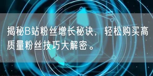 随着B站的快速发展,越来越多的个人和企业开始重视在B站上的影响力。而粉丝数量是衡量影响力的一个重要指标。本文将为您揭秘B站粉丝增长的秘诀,帮助您轻松掌握购买高质量粉丝的技巧。